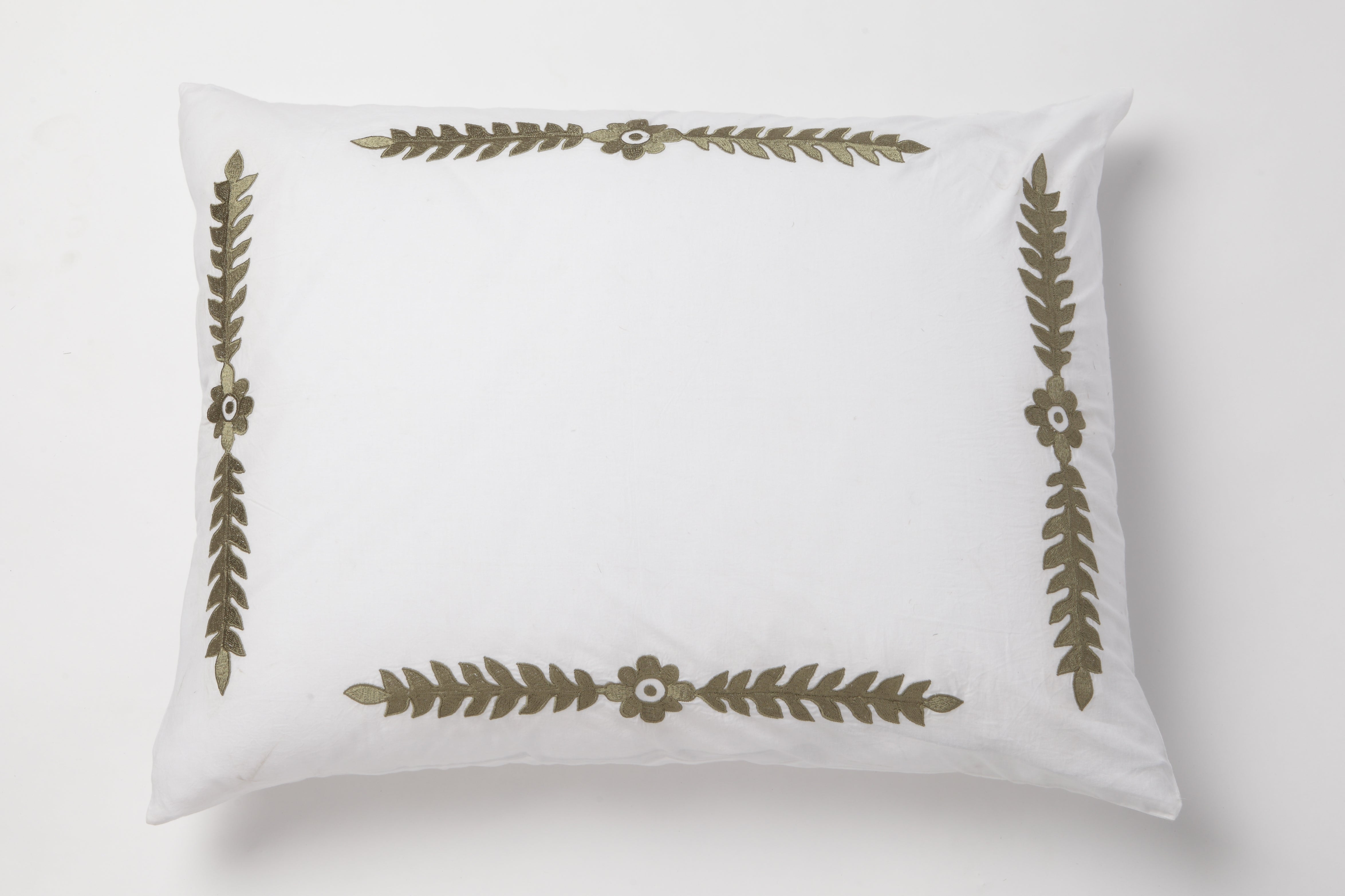 Timeless elegance meets understated luxury in our Emerald green Cushion. Designed in a crisp white Palette with delicately embroidered borders, this 12”x16” cushion adds a touch of quiet sophistication to any setting. Perfect for layering or styling solo, it brings a refined, minimal charm to your home.